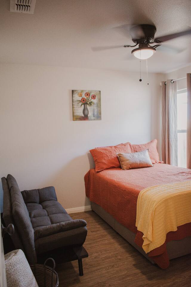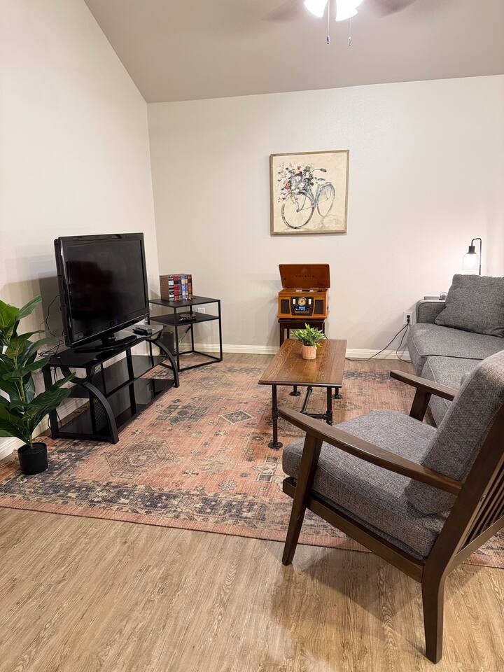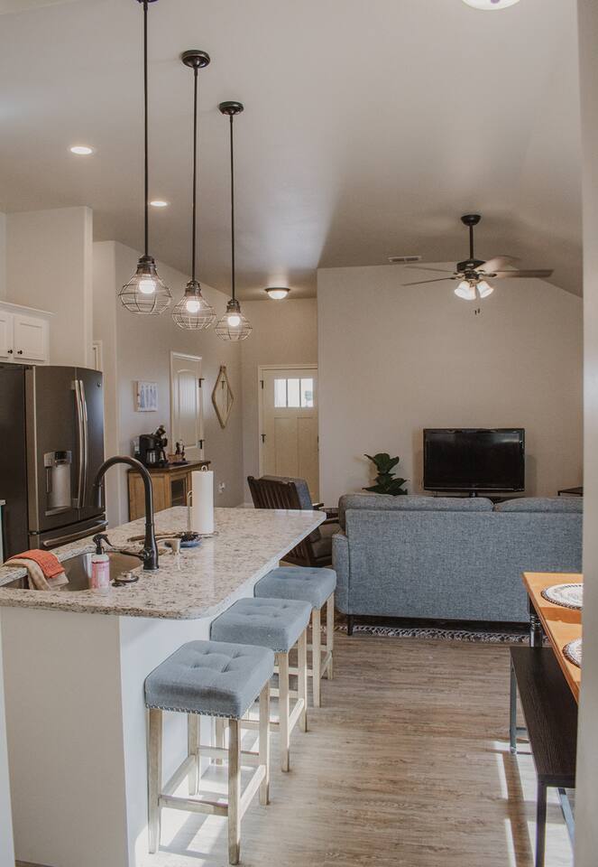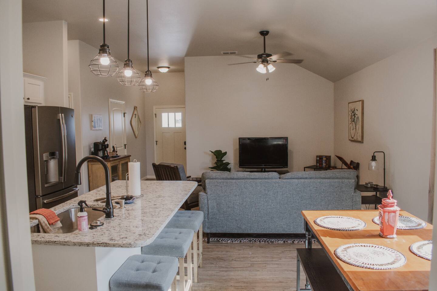 Welcome to The Tombstone Retreat – This brand new 3 bed, 2 bath located near the Zoo, ACU, Lytle Lake, and the dog park, in a quiet neighborhood off Maple Street! You’ll find an open floor plan, stocked kitchen, ice maker, and plenty of room to relax. Sleeps 6, 2 queens and 1 full &comfy bedding. Enjoy Wi-Fi, smart TV’s for streaming your favorite shows. Outside, a large fenced yard with a cozy patio—great for grilling, relaxing, or letting the kids or pups play. There’s also a two-car garage.