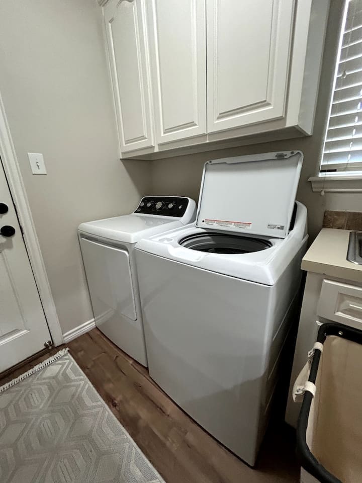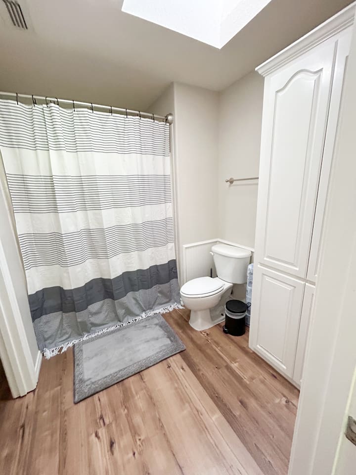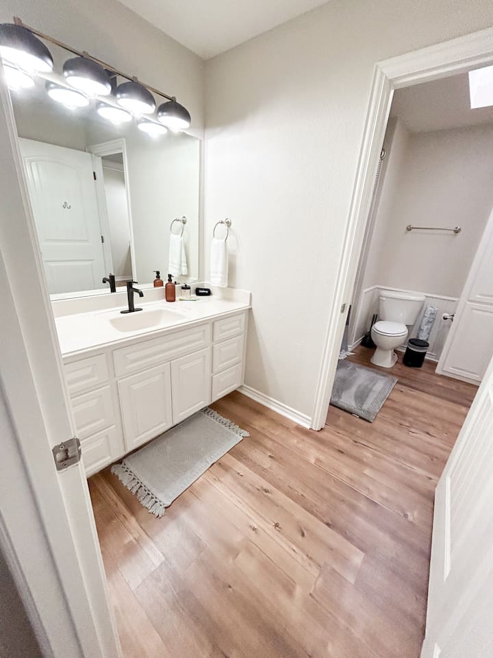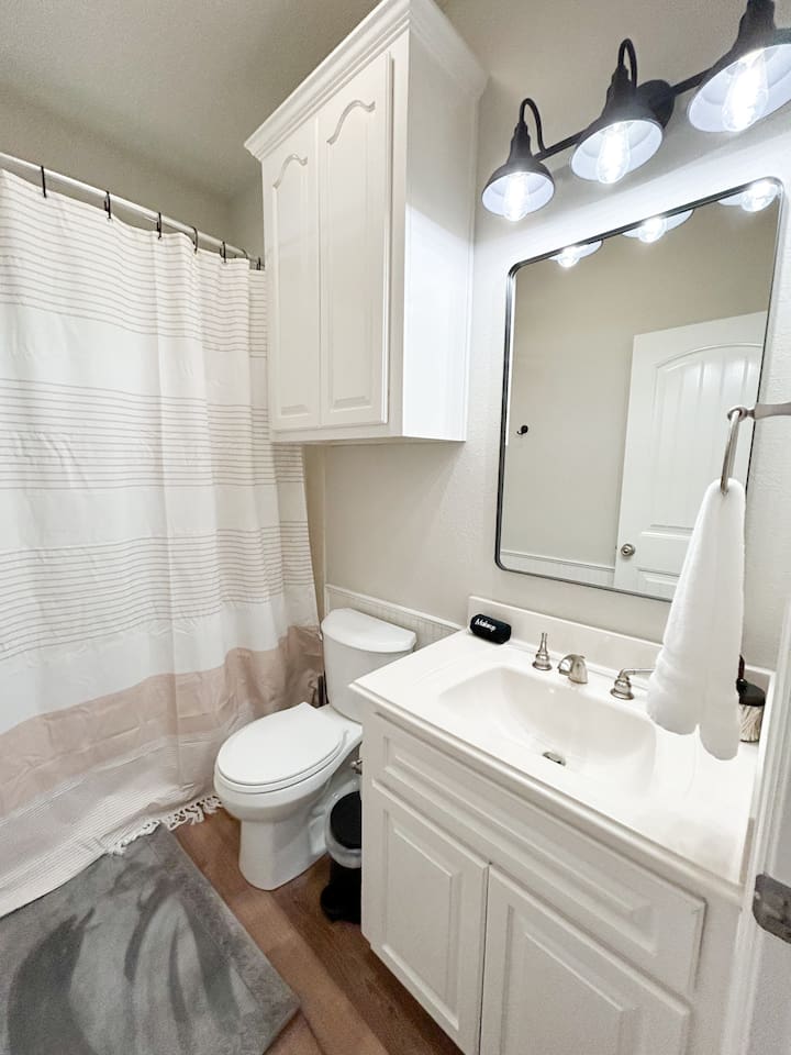Spacious 4-Bedroom Home with Comfortable Layout Welcome to our charming 4-bedroom home, designed for comfort and convenience. Whether you're traveling with family, friends, or a group, you'll find everything you need to make your stay memorable. Downstairs: Master Bedroom: King-size bed with an attached private restroom for your ultimate privacy and comfort. Second Bedroom: Cozy Queen-size bed, perfect for a restful night's sleep. Additional Restroom: A separate restroom located conveniently nearby. Upstairs: Third Bedroom: Two full-size beds, ideal for families or group stays. Fourth Bedroom: One Queen-size bed for a peaceful retreat. Jack and Jill Restroom: Shared between the two upstairs bedrooms, offering easy access for everyone. This home offers a perfect combination of shared and private spaces, ensuring that everyone can relax and enjoy their time here.