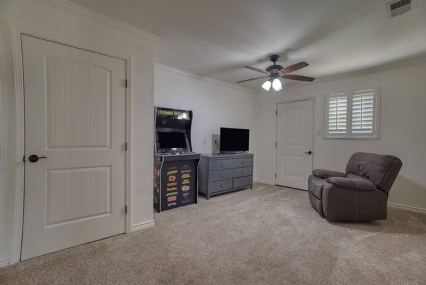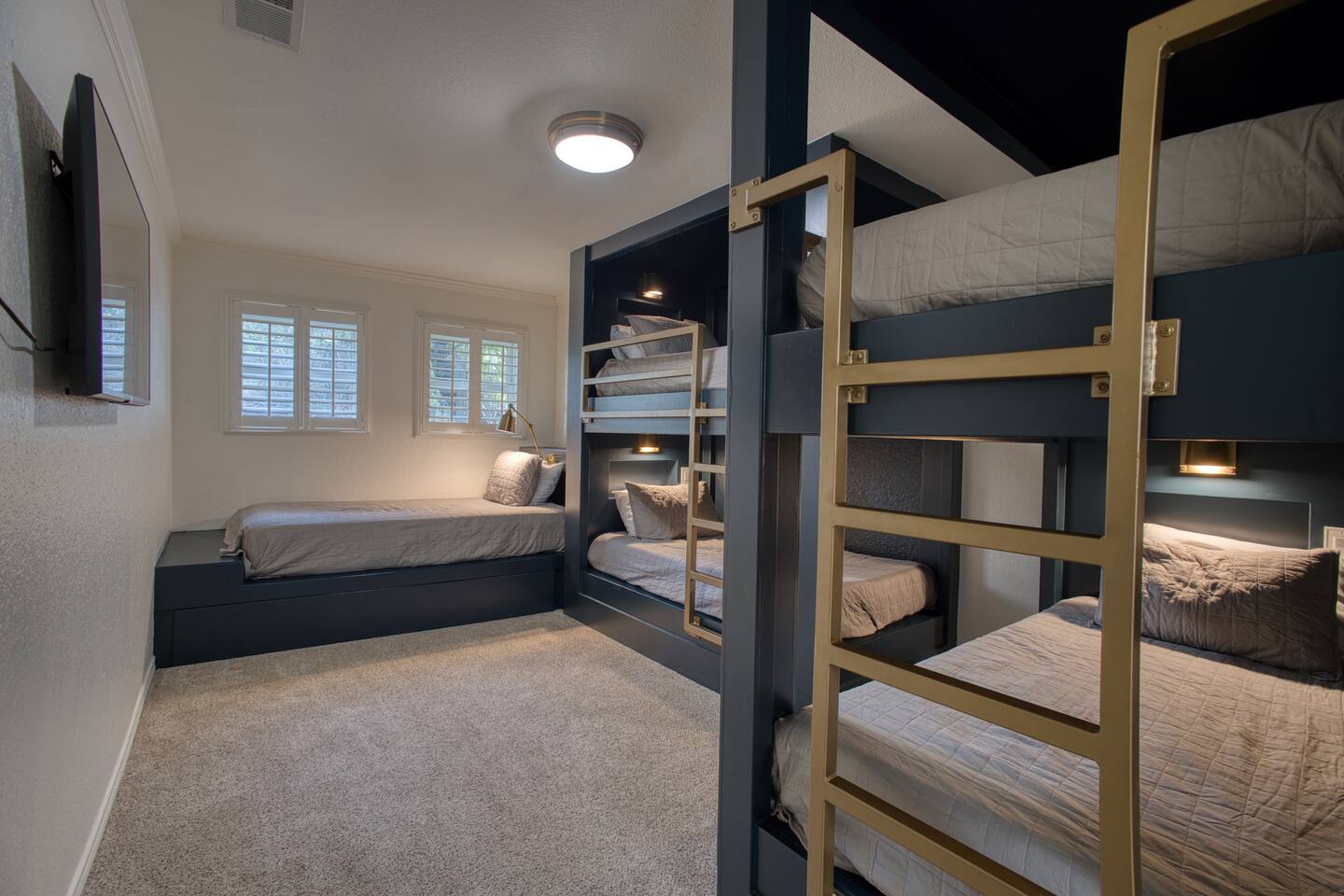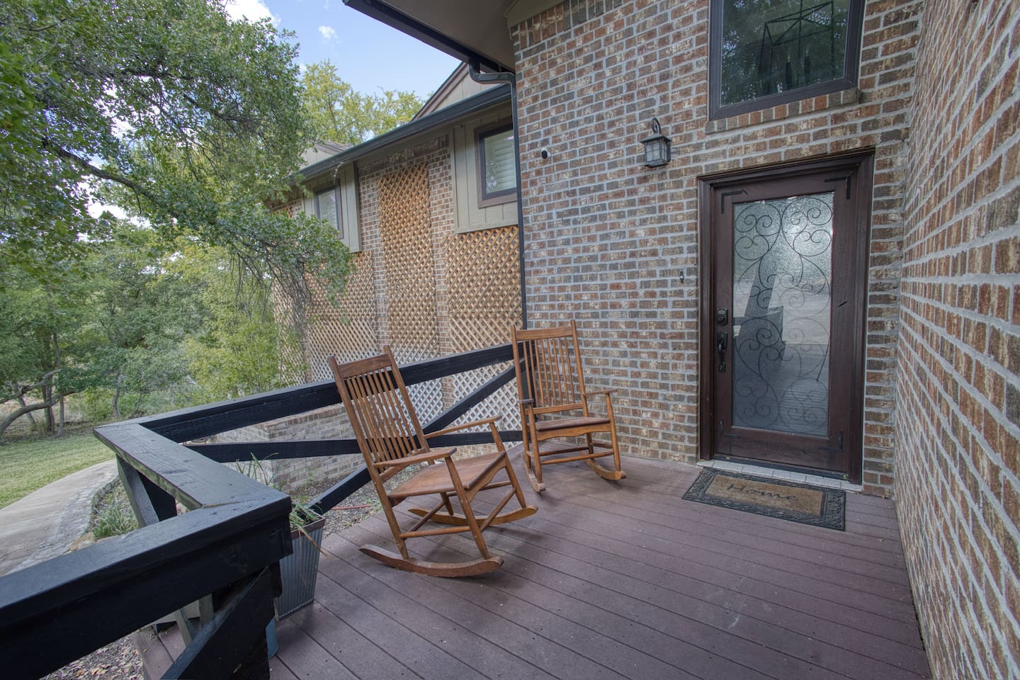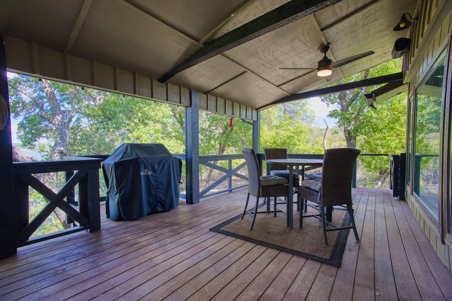 Treehouse-Style Lakeview Retreat on Lake Brownwood Welcome to the Edge Cliff Cove, your dream lake escape — a two-story retreat that feels like a treehouse overlooking the water. Nestled among tall oaks with sweeping lake views, this stunning property combines serenity, privacy, and lake life at its finest. The Space The main level features a spacious king en-suite bedroom, a grand living room with floor-to-ceiling windows that make you feel suspended in the trees, and a massive balcony with comfortable seating, outdoor dining, and several barbecue grills—perfect for family cookouts at sunset. Inside, a large dining room seats your entire group, and the fully stocked kitchen is ready for everything from Thanksgiving feasts to casual brunches. A two-car garage, playground, and hammock area add both convenience and charm. There is ample parking for family reunions and group gatherings. Downstairs Retreat The lower level is designed for relaxation and fun. A custom bunk room, lovingly built by the owners, sleeps six guests with five built-in bunks, individual reading lights, and an extra pull-out bed. You’ll also find two king bedrooms, a shared bath, and a spacious game room that can easily convert into an additional sleeping area. Outdoor Bliss Take a peaceful walk down to your private dock, tucked away in a quiet cove where you can fish, swim, or simply unwind by the water. Whether you’re sipping coffee on the porch or watching the stars from the dock, this home offers a one-of-a-kind connection to nature. Perfect For • Family gatherings and reunions • Couples’ retreats and friend getaways • Extended stays and remote work with a view