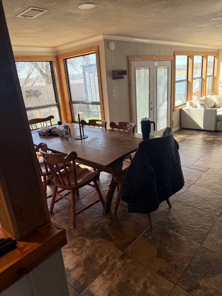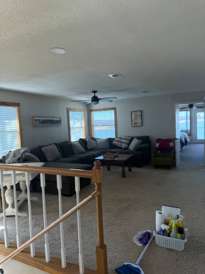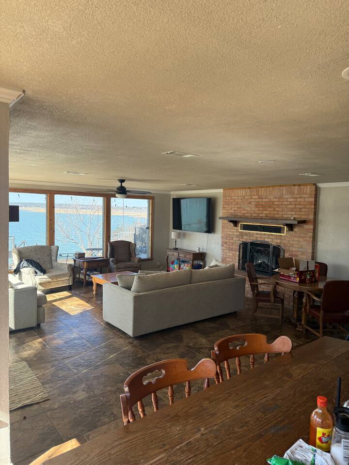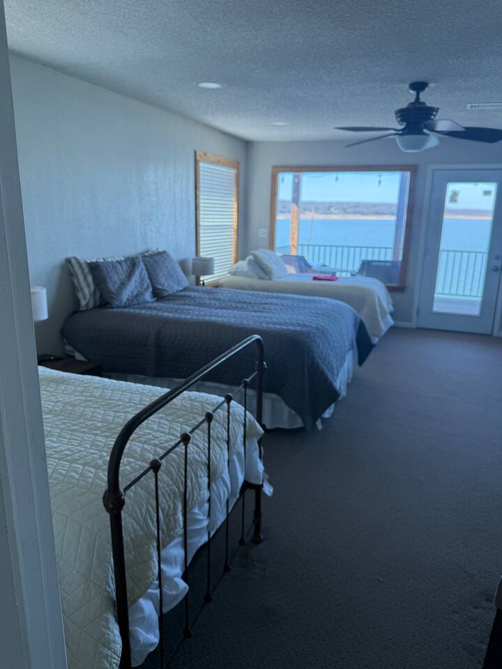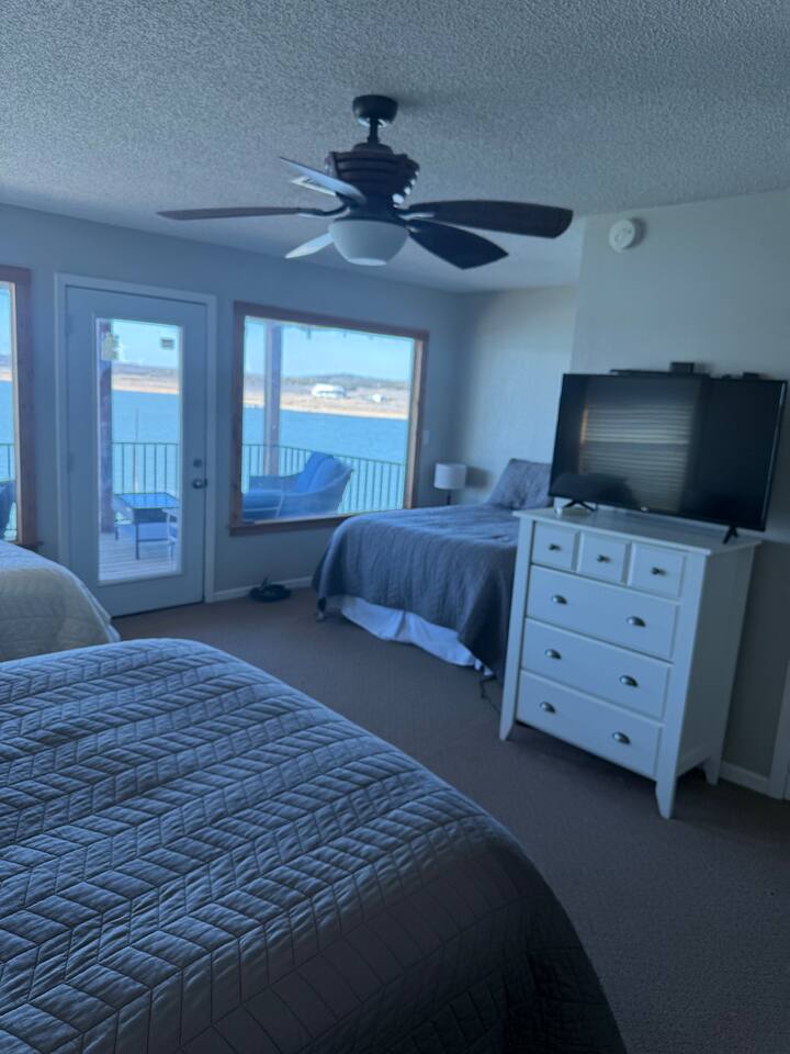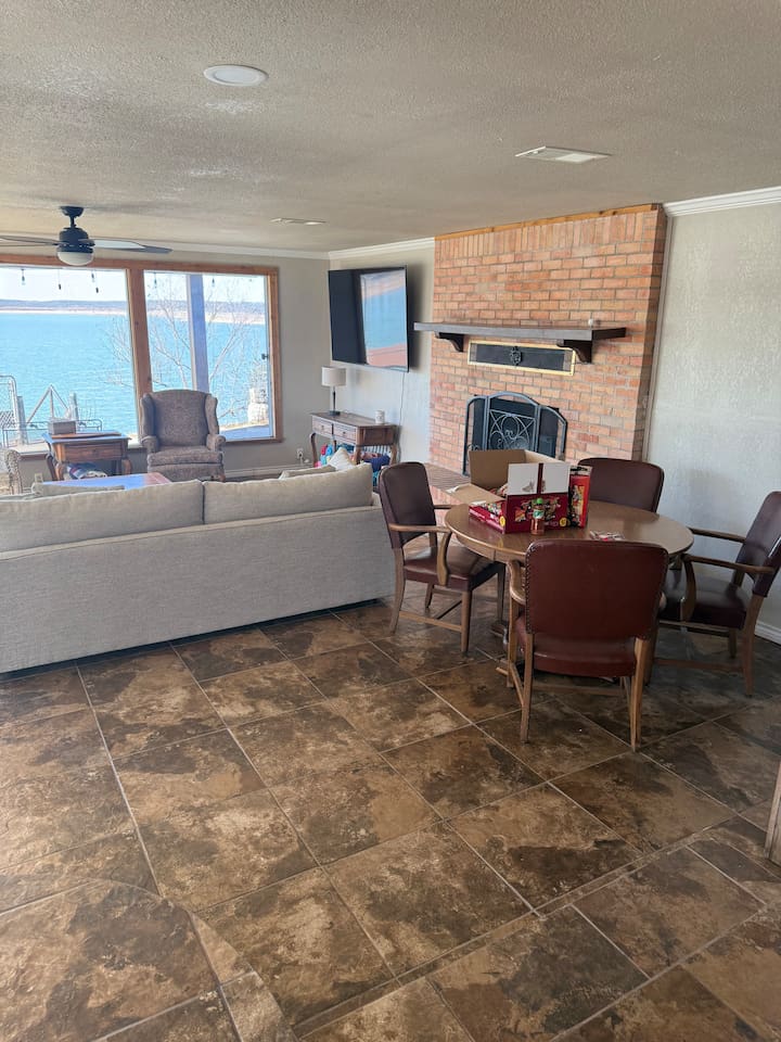 Wake up to peaceful lake views and spend your evenings relaxing on the patio as the sun sets over the water. This spacious 3-bedroom, 3-bath lakefront home offers direct lake access and a large family room with an oversized TV — perfect for movie nights after a full day outside. This home features a king bedroom, a queen bedroom and a bunk style room with 1 qn, one full, and two twins, one complete with trundle. Relax with the whole family at this comfortable and relaxing place to stay.