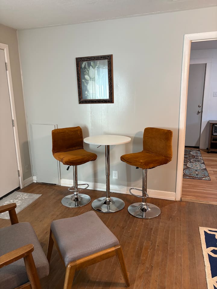 This private guest house located behind the main home offers a quiet and efficient place to stay for guests needing a longer visit in Abilene. The unit includes one private bedroom plus a twin bed with trundle in the living area, giving flexible sleeping arrangements. The home features a small kitchen, compact bathroom, and comfortable living area designed for practical day-to-day use. The space is modest but functional and ideal for guests who value privacy and affordability. Private alley parking is available for one vehicle. 1 Dog is welcome with approval (no cats). Because the guest house is small and efficiently designed, it works best for one, two or three guests.