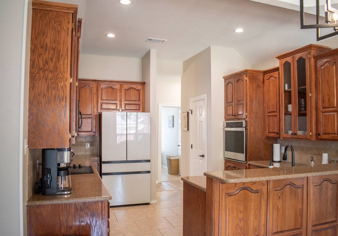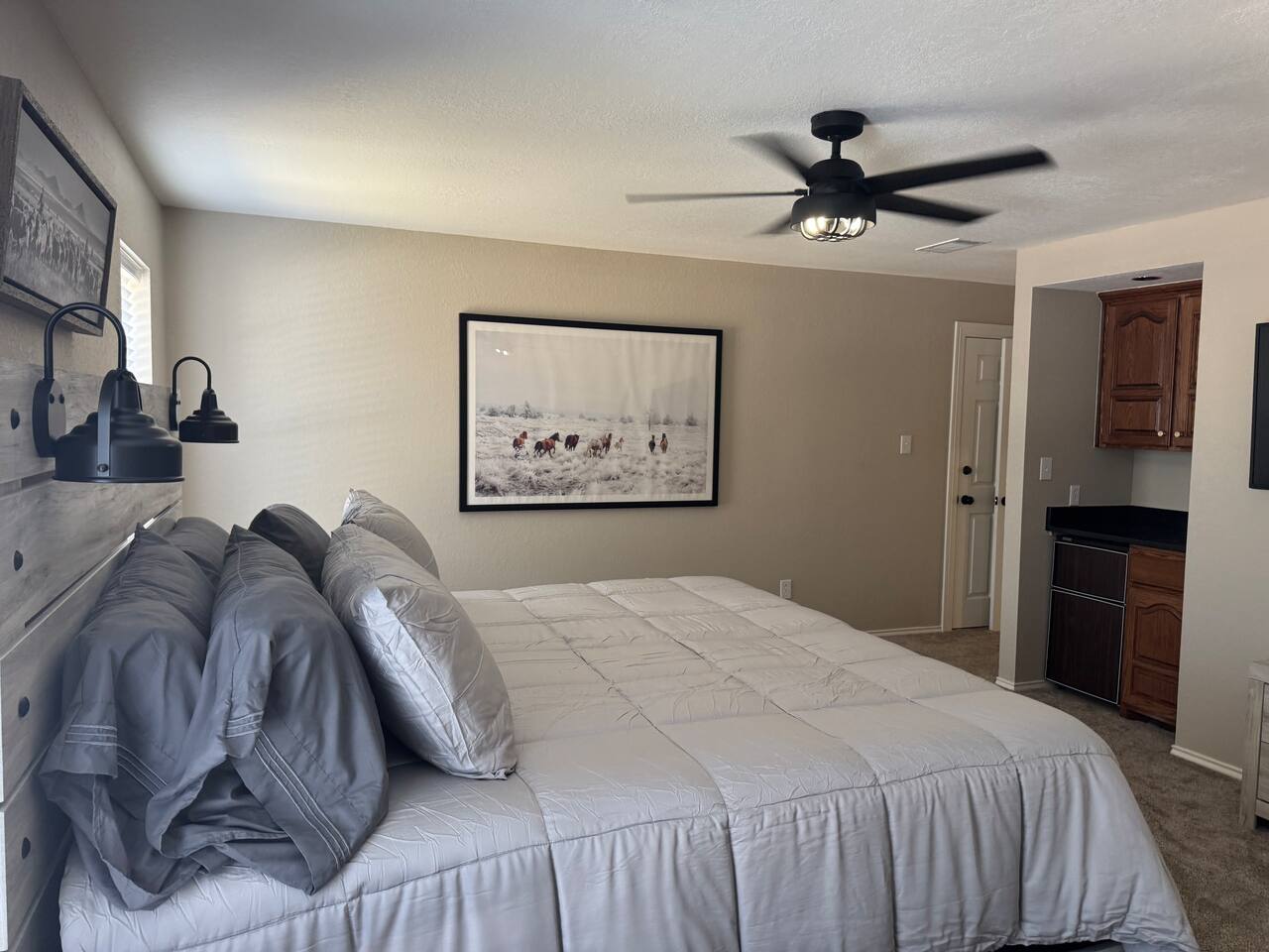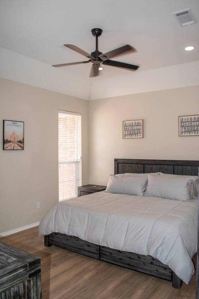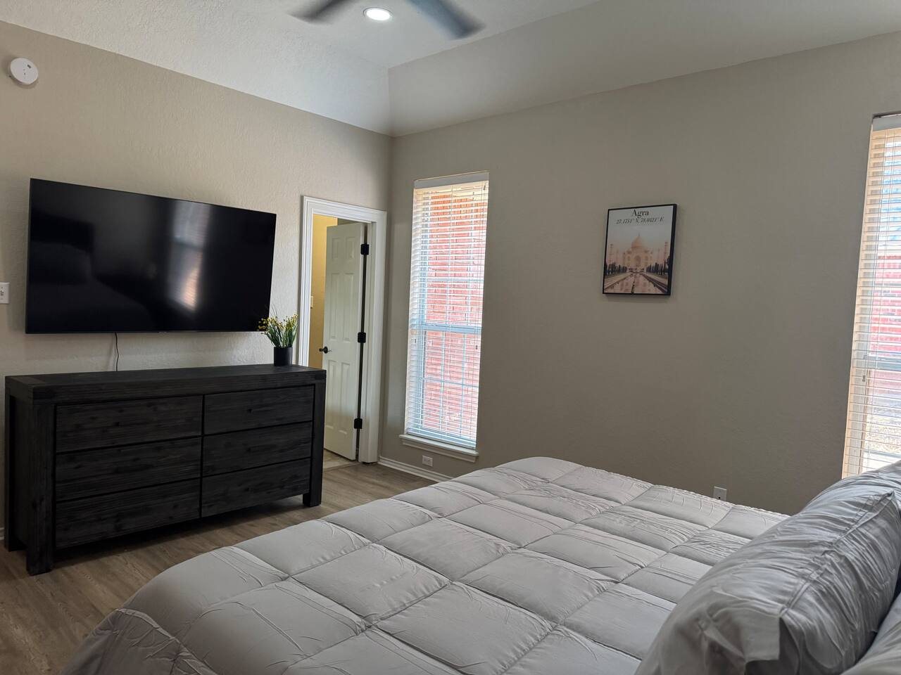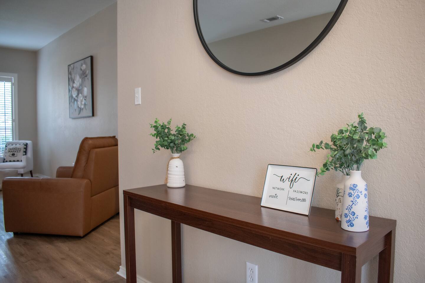 Smith’s Place – Executive Retreat in Central Abilene Welcome to Smith’s Place, a beautifully designed two-story executive home located in one of Central Abilene’s most quiet, established, and upscale neighborhoods, just minutes from the highly sought-after Wylie Independent School District area. With 4 bedrooms and 3 full bathrooms, this spacious home is ideal for business travelers, executive stays, and families alike. The thoughtful layout allows guests to enjoy both togetherness and privacy, making it perfect for groups who want comfortable separation during their stay. The home is also a tribute to the owners’ beloved granny, who loved bright green apples—a small theme woven throughout the home as a nod to her warmth and hospitality. Bedroom Layout & Privacy This two-story home is designed with privacy in mind: • Downstairs King Suite – A private king bedroom with its own en-suite bathroom, ideal for guests who prefer to stay on the main level. • Upstairs King Suite – Another self-contained king bedroom upstairs with its own bathroom, creating a perfect private retreat away from the main living areas. • Two Additional Queen Bedrooms – Located on the west wing of the downstairs level, these two comfortable queen bedrooms share a full bathroom conveniently situated between them. Because of this layout, the home naturally separates into distinct living areas, allowing multiple couples, colleagues, or family members to enjoy their own private spaces. Why Guests Love Smith’s House • Executive-style home in a quiet, upper-class neighborhood • Two-story layout with multiple private bedroom suites • Ideal for corporate travel, relocations, and family visits • Spacious design that allows groups to spread out comfortably • Convenient central Abilene location Whether you’re in town for business, visiting family, or a longer stay, Smith’s House offers a calm, comfortable, and refined place to call home during your time in Abilene.