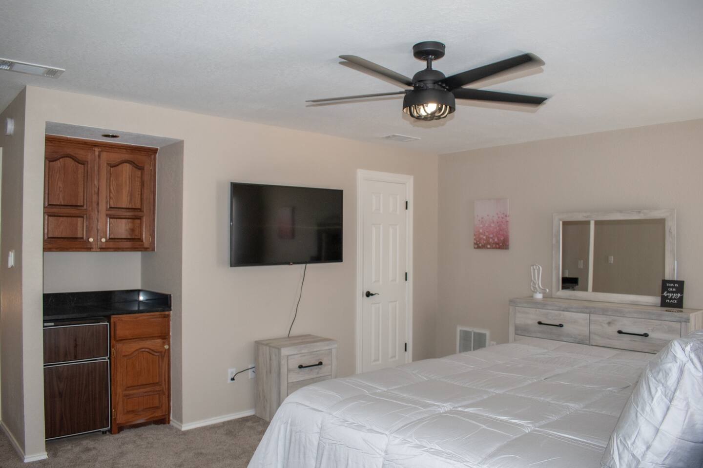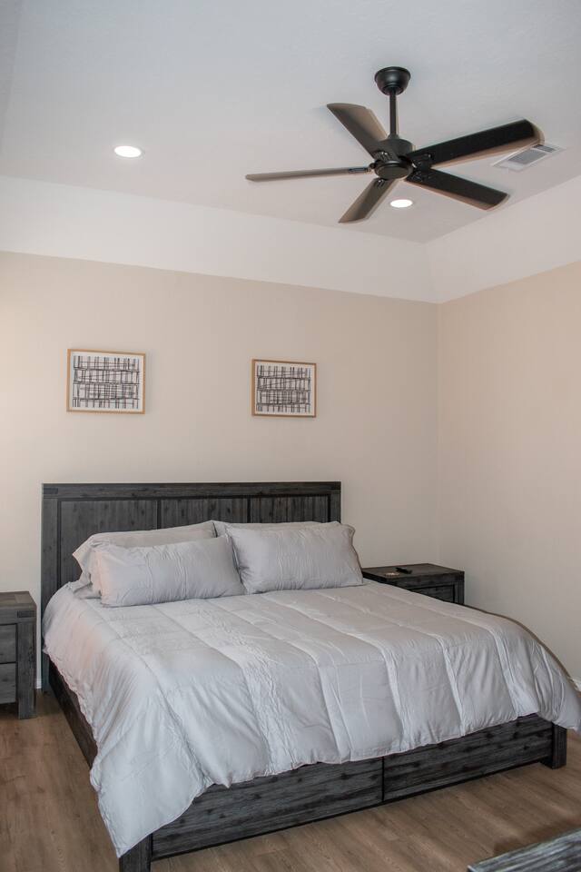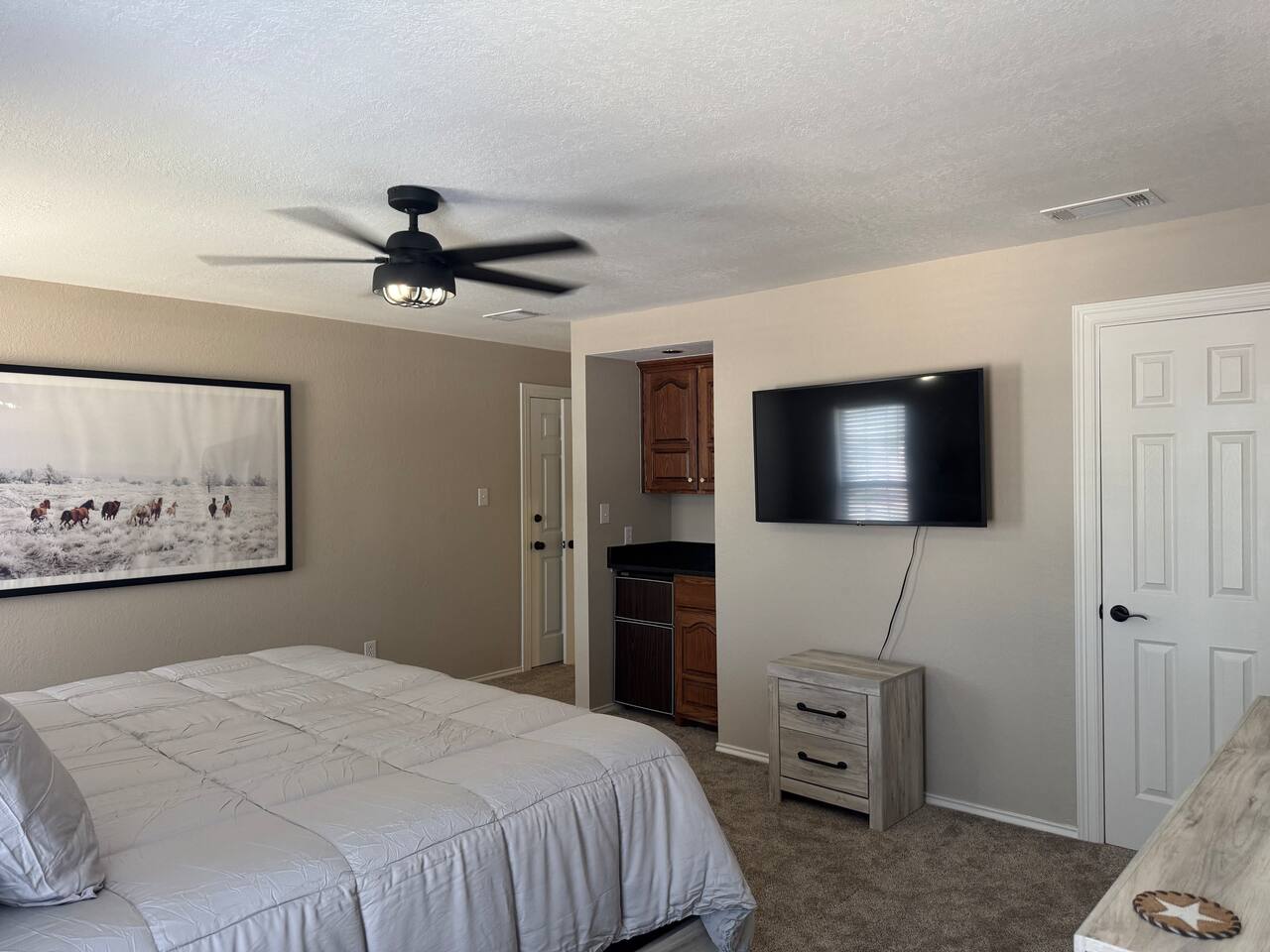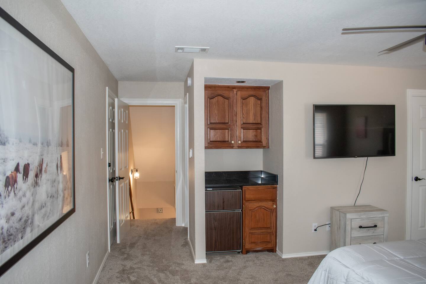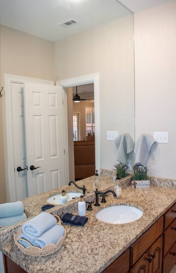 Smith’s Place – Executive Retreat in Central Abilene Welcome to Smith’s Place, a beautifully designed two-story executive home located in one of Central Abilene’s most quiet, established, and upscale neighborhoods, just minutes from the highly sought-after Wylie Independent School District area. With 4 bedrooms and 3 full bathrooms, this spacious home is ideal for business travelers, executive stays, and families alike. The thoughtful layout allows guests to enjoy both togetherness and privacy, making it perfect for groups who want comfortable separation during their stay. The home is also a tribute to the owners’ beloved granny, who loved bright green apples—a small theme woven throughout the home as a nod to her warmth and hospitality. Bedroom Layout & Privacy This two-story home is designed with privacy in mind: • Downstairs King Suite – A private king bedroom with its own en-suite bathroom, ideal for guests who prefer to stay on the main level. • Upstairs King Suite – Another self-contained king bedroom upstairs with its own bathroom, creating a perfect private retreat away from the main living areas. • Two Additional Queen Bedrooms – Located on the west wing of the downstairs level, these two comfortable queen bedrooms share a full bathroom conveniently situated between them. Because of this layout, the home naturally separates into distinct living areas, allowing multiple couples, colleagues, or family members to enjoy their own private spaces. Why Guests Love Smith’s House • Executive-style home in a quiet, upper-class neighborhood • Two-story layout with multiple private bedroom suites • Ideal for corporate travel, relocations, and family visits • Spacious design that allows groups to spread out comfortably • Convenient central Abilene location Whether you’re in town for business, visiting family, or a longer stay, Smith’s House offers a calm, comfortable, and refined place to call home during your time in Abilene.