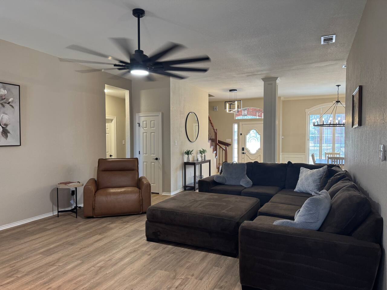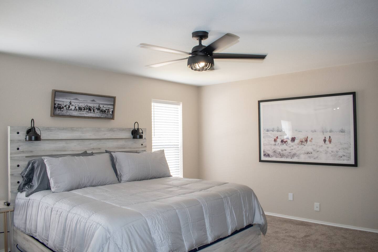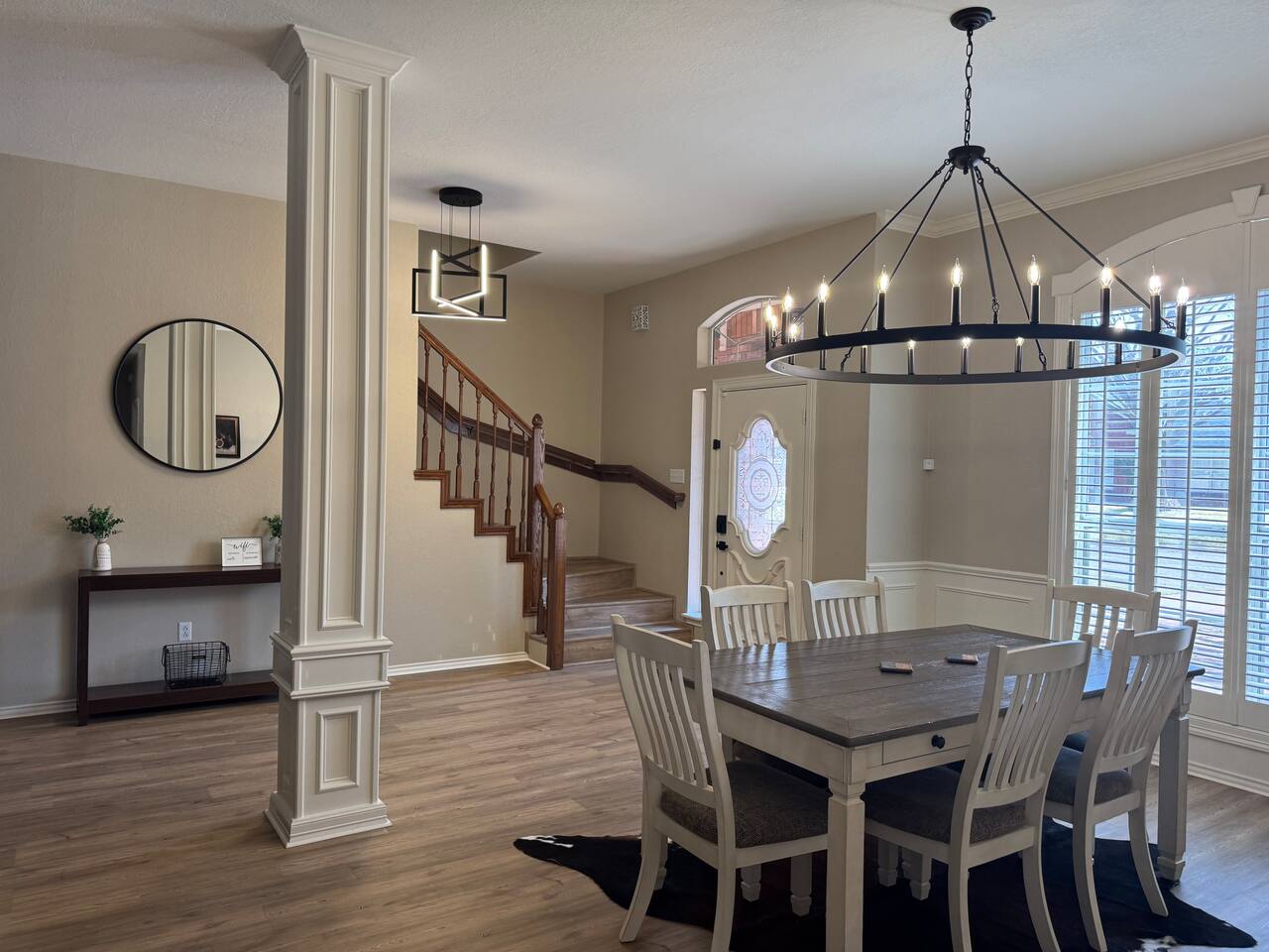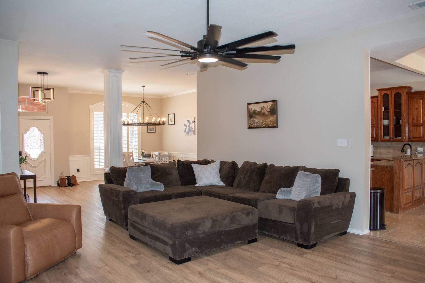 Smith’s Place is a beautiful two-story executive home in a quiet, upscale Central Abilene neighborhood near the highly sought-after Wylie Independent School District area. With 4 bedrooms and 3 baths, the layout offers excellent privacy: a downstairs king suite, an upstairs king suite with its own bath, and two queen bedrooms on the west wing sharing a bathroom. Ideal for business travelers, families, and groups who want space to spread out and relax.