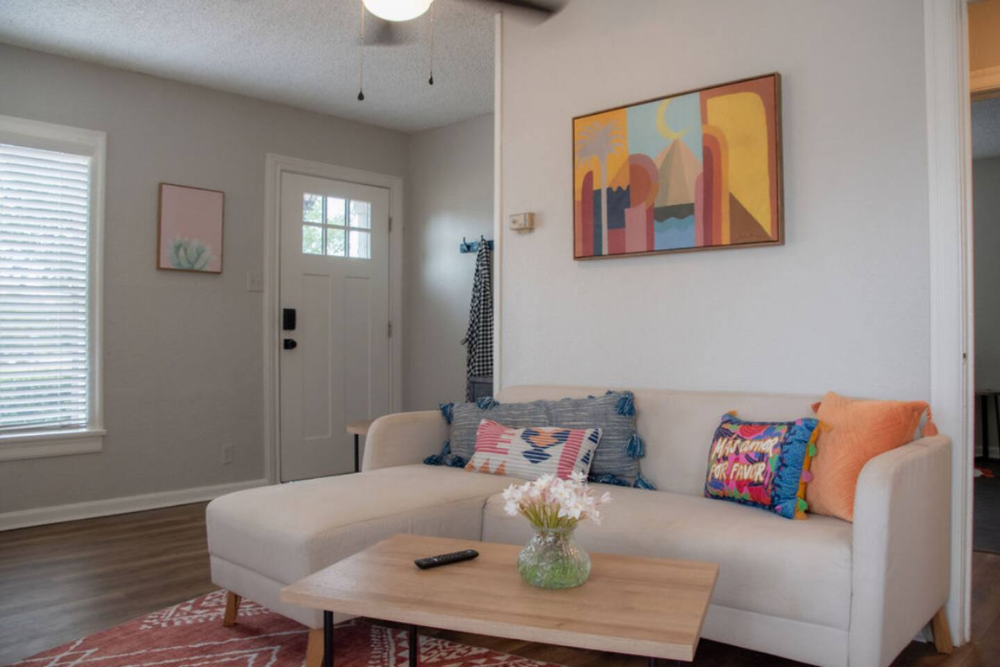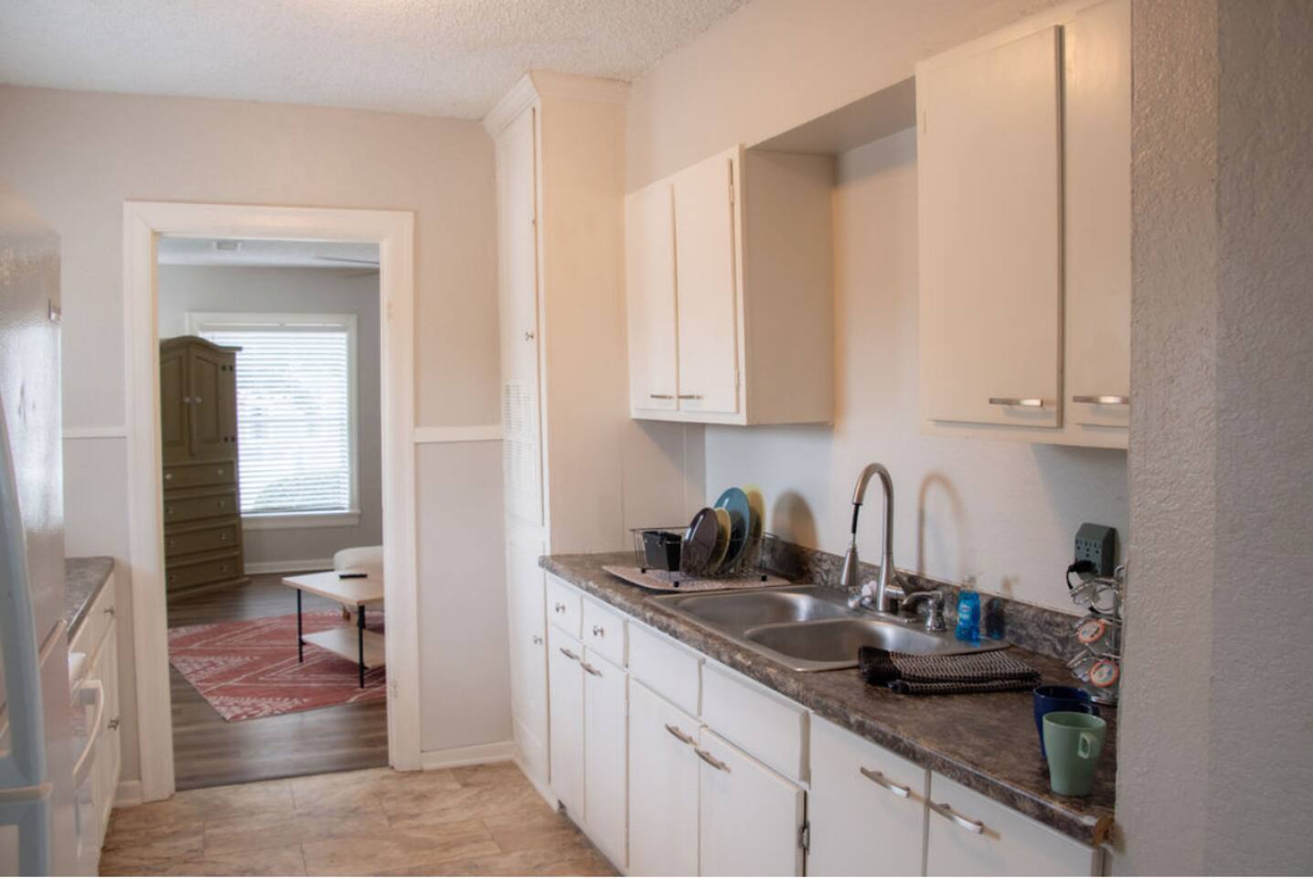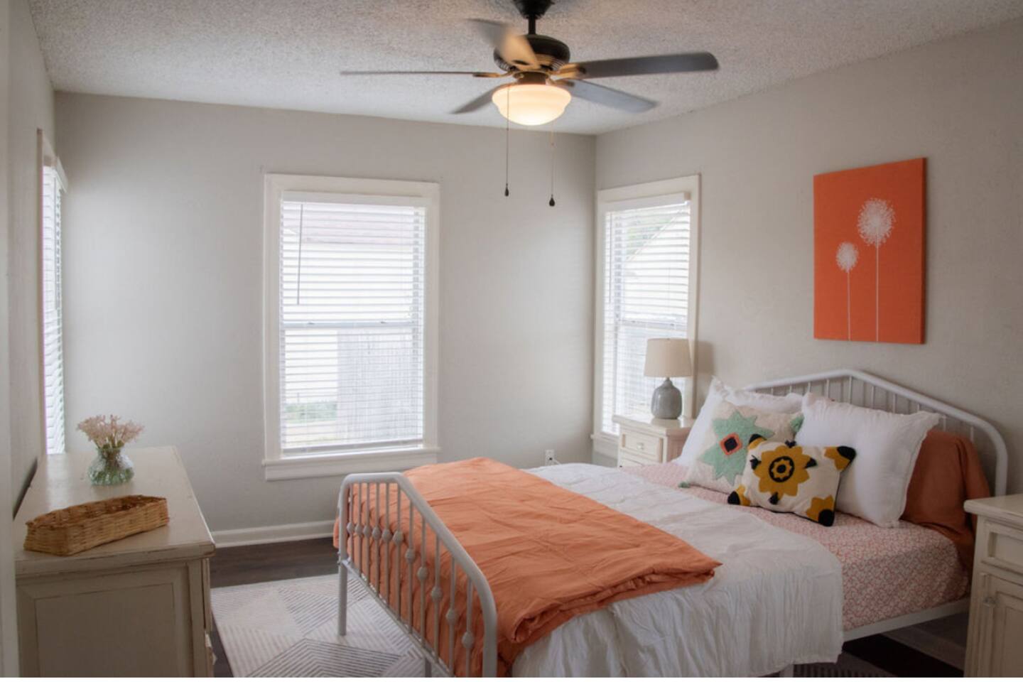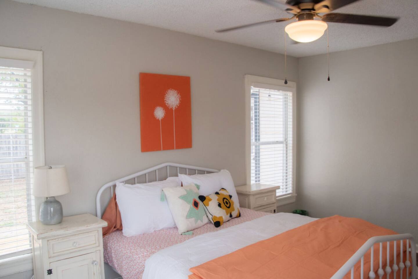 Cozy 2-bedroom home in central Abilene with 2 queen beds, a small living room, dining nook, and a well-stocked kitchen. Washer and dryer included for your convenience. The bathroom is simple but clean with fresh towels. Nothing fancy here—just a humble, comfortable spot near HSU, ACU, Dyess AFB, and downtown. Perfect for an easy stay whether you’re visiting family, attending events, or just passing through. As with many older homes, it has a bit of character—including fewer outlets.