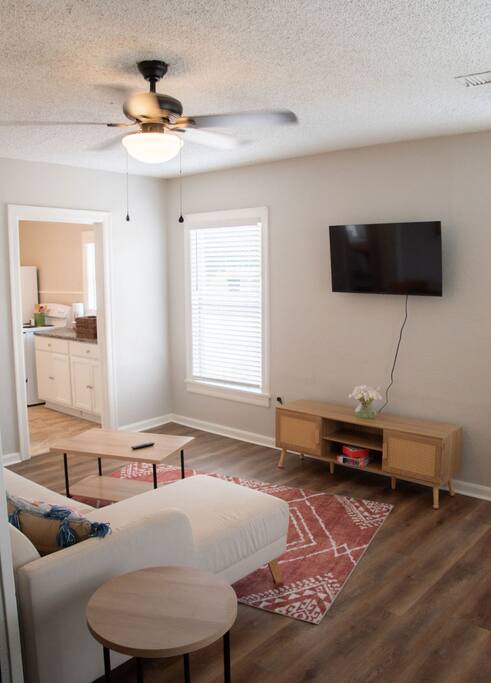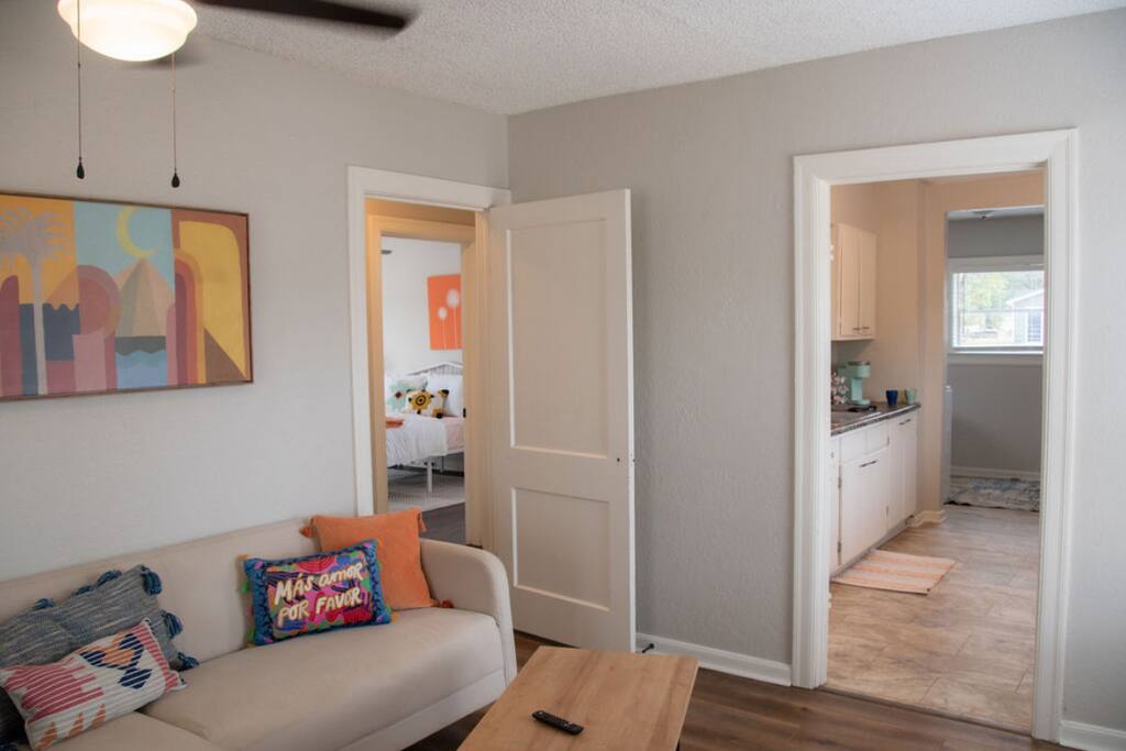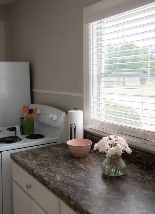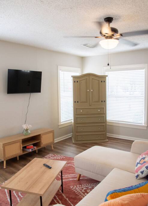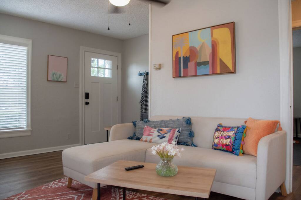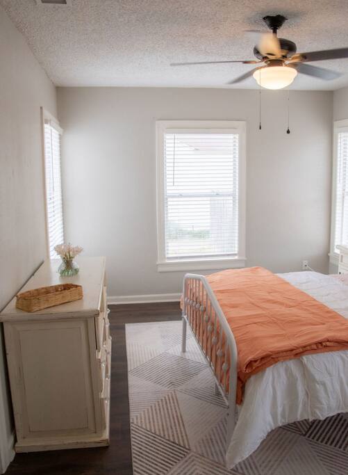 Cozy 2-bedroom home in central Abilene with 2 queen beds, a small living room, dining nook, and a well-stocked kitchen. Washer and dryer included for your convenience. The bathroom is simple but clean with fresh towels. Nothing fancy here—just a humble, comfortable spot near HSU, ACU, Dyess AFB, and downtown. Perfect for an easy stay whether you’re visiting family, attending events, or just passing through.