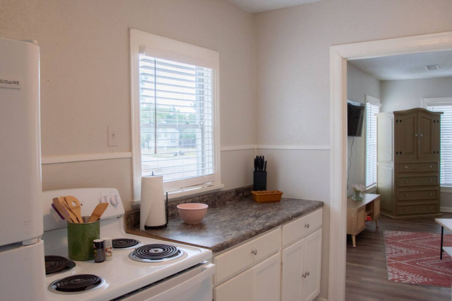 This is a 2-bedroom, 1-bath home that is definitely on the older side, with its own charm and character. There’s a back deck with a grill for outdoor use. As with many older homes, there are fewer outlets and some features may feel more dated. We believe in being completely transparent so guests know exactly what to expect—this space is clean, comfortable, and functional for a relaxed stay.